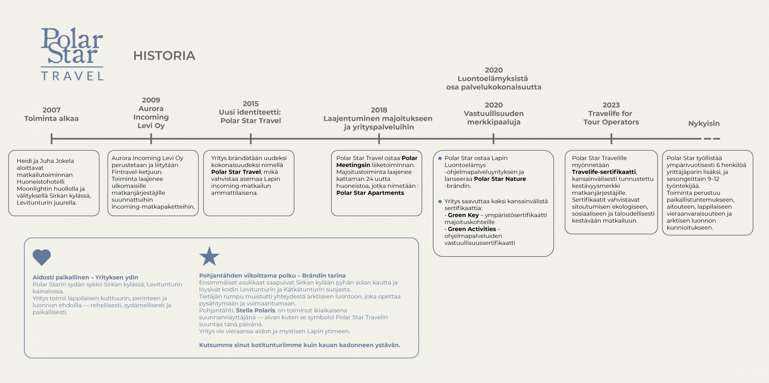 Polar Star Travel juhlistaa 10-vuotista taivaltaan – Leviläinen perheyritys kasvanut monipuoliseksi Lapin matkailun osaajaksi Levi/Sirkka – Polar Star Travel viettää 10-vuotissyntymäpäiviään 2.12. klo 14–17 toimistollaan Torikujalla. Juhlavuosi tarjoaa mahdollisuuden tarkastella yrityksen kasvua paikallisesta perheyrityksestä vahvaksi Lapin matkailualan toimijaksi, jonka toiminta